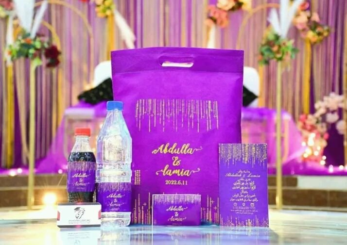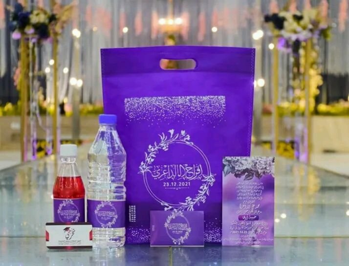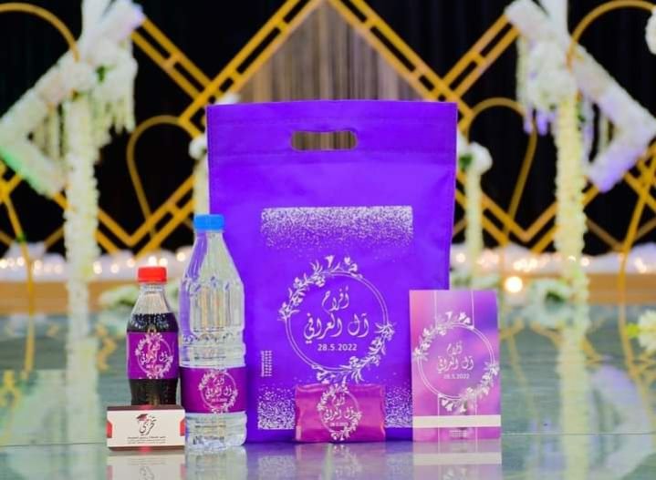 | في الباكج | كيس قماشي, ماء معدني, بيبسي, منديل (فاين), دعوة زفاف |