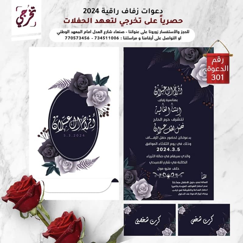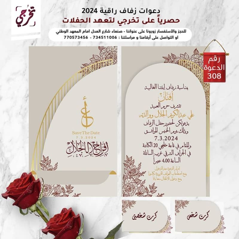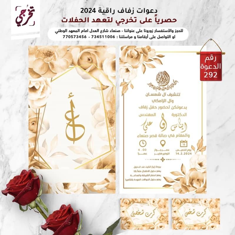 احدث دعوات الزفاف للعام 2024 مقاس 10*17 مع كروت التشخيص