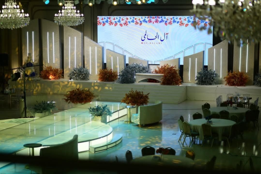 الديكور قد يكون مناسب لبعض القاعات والبعض قد يحتاج الئ اضافة استيج او اتخاذ اجراءات اخرئ